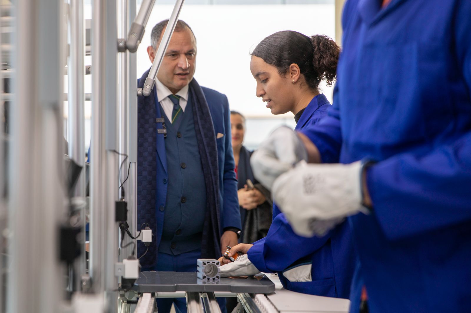 وعلاوة على ذلك، زار السيد الوزير مرافق المدرسة، حيث اطلع عن كثب على المناهج البيداغوجية الحديثة والمنظومات التقنية المتطورة المعتمدة لتوفير تكوين رفيع المستوى ينسجم مع تطور احتياجات الصناعة الوطنية والاتجاهات الجديدة للصناعة على الصعيد الدولي.