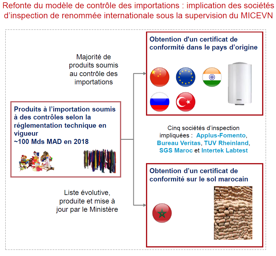 The new system is based on the use of inspection bodies, within the framework of the implementation of Law No. 24-09 relating to the safety of products and services and in accordance with Order No. 3873-13 of 22 Safar 1435 (December 26, 2013) concerning the approval of conformity assessment bodies.