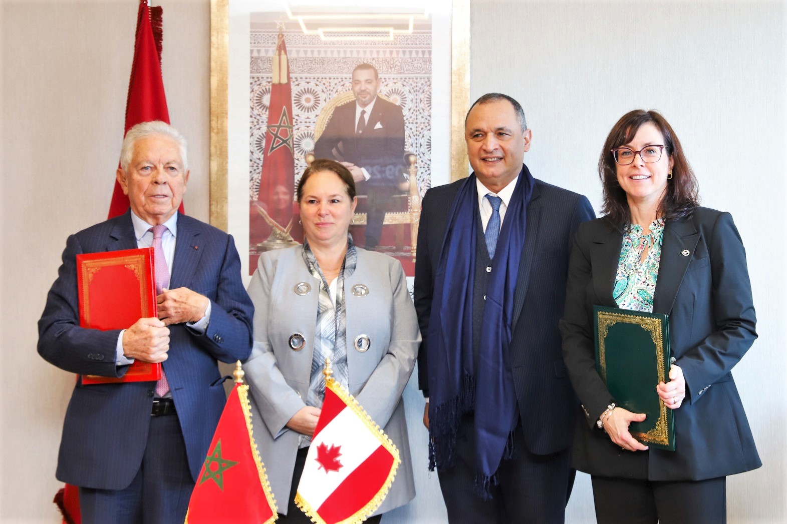 Une cérémonie de signature du contrat d’acquisition du terrain et construction de la nouvelle usine de la société Pratt & Whitney Maroc dans la zone MidParc a eu lieu, aujourd’hui jeudi 07 décembre 2023, au siège de ce Ministère à Rabat, en présence de M. Ryad Mezzour, Ministre de l’Industrie et du Commerce et de Mme Isabelle Vallois, ambassadrice du Canda au Maroc.