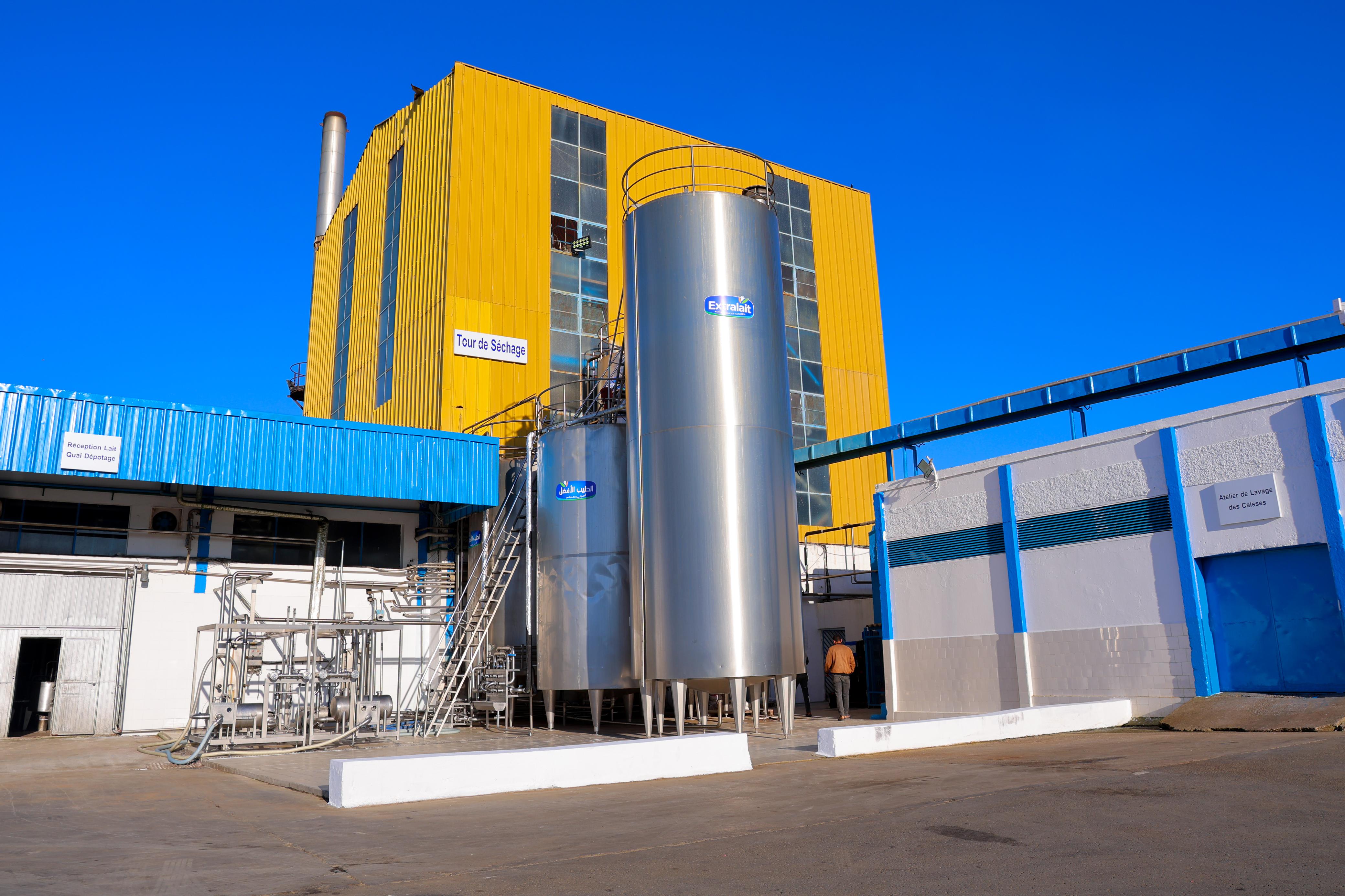 EXTRALAIT dispose, par ailleurs, d'une tour de séchage du lait, l'une des quatre existantes au Maroc. Cette installation joue un rôle important dans la régulation de la production laitière, dans la mesure où elle permet de transformer en poudre les excédents de lait en périodes de haute lactation ou de contraction de la demande. Au-delà de ses besoins propres, EXTRALAIT met cette infrastructure à la disposition des autres opérateurs du secteur laitier, contribuant ainsi au renforcement des capacités nationales de transformation et à une meilleure régulation de la filière.
