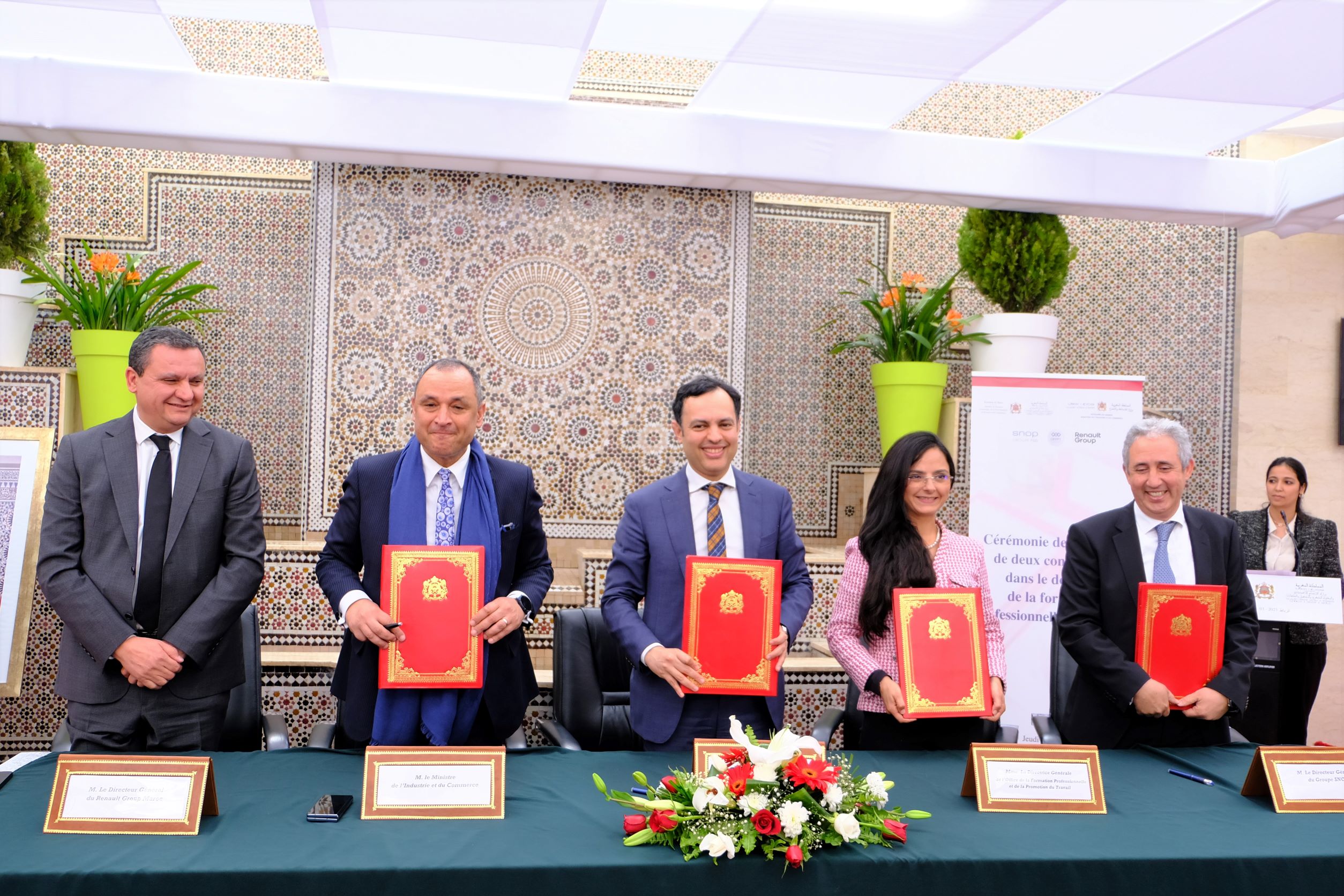 La première convention signée avec Renault Group Maroc permettra de développer une offre diversifiée de formation professionnelle dédiée au secteur automobile, ainsi que de répondre aux besoins en Ressources Humaines du Groupe et son écosystème.