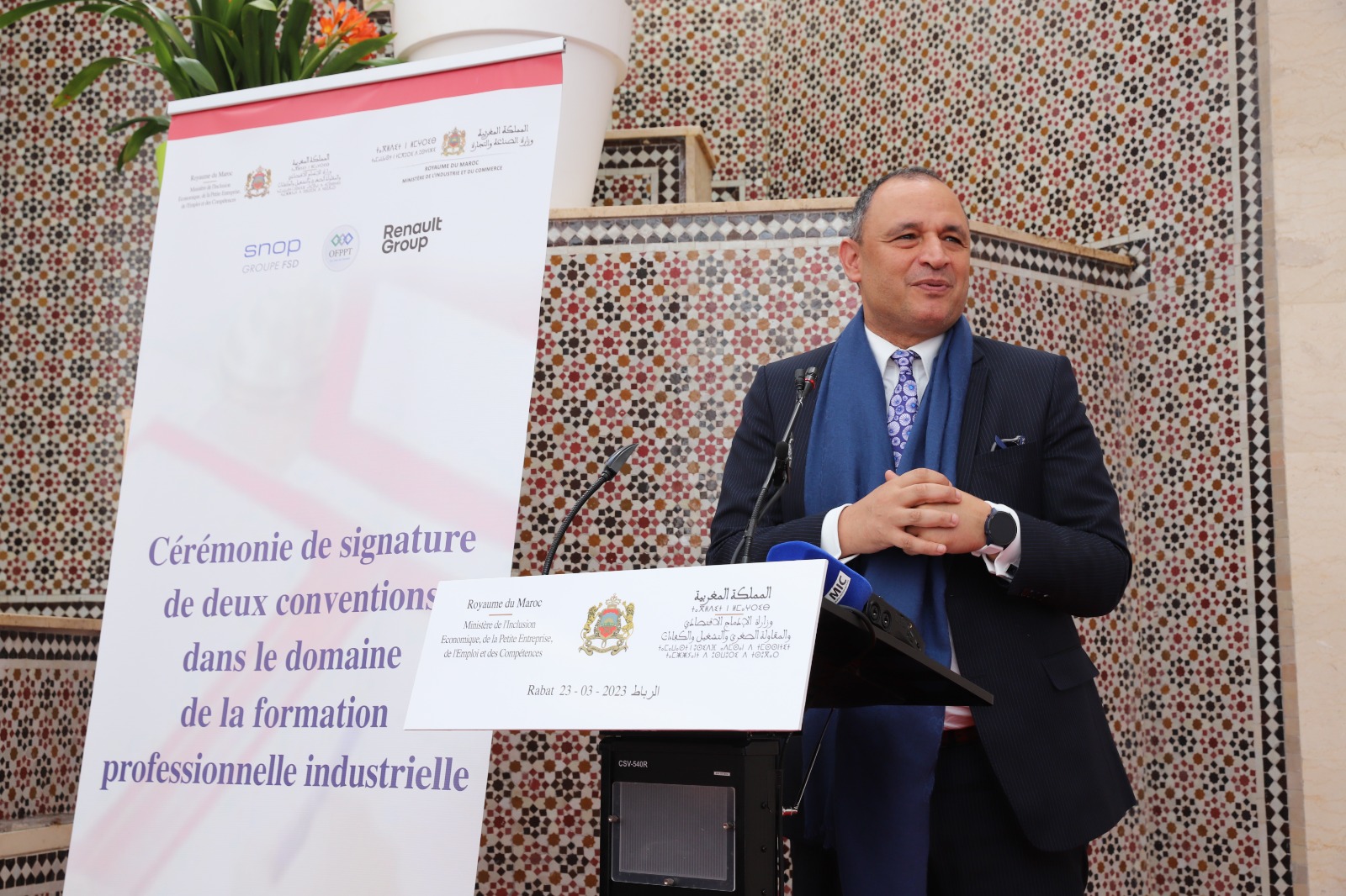 Deux conventions pour le renforcement de la formation dans l’industrie automobile ont été signées, jeudi 23 mars 2023, à Rabat, par le Ministre de l’Inclusion Economique, de la Petite Entreprise, de l’Emploi et des Compétences, M. Younes Sekkouri, le Ministre de l’Industrie et du Commerce, M. Ryad Mezzour, la Directrice Générale de l’Office de la Formation Professionnelle et de la Promotion du Travail (OFPPT), Mme Loubna Tricha, le Directeur Général Renault Group Maroc, M. Mohamed Bachiri, et le Directeur Général de la société SNOP-Groupe FSD Maroc, M.Tajeddine Bennis.